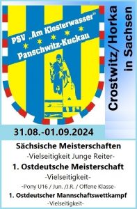 In diesem Jahr wird es in Sachsen, genauer gesagt in 01920 Crostwitz OT Horka vom 31.08.-01.09.2024 die 1. Ostdeutschen Meisterschaften in der Vielseitigkeit geben.