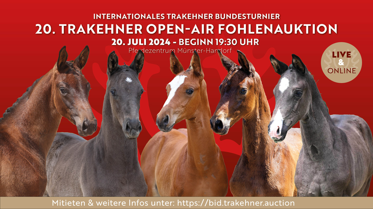 Die Trakehner Fohlenauktion ist seit zwei Jahrzehnten ein besonderer Höhepunkt des Bundesturniers, eine Tradition mit Stimmungs- und Qualitätsgarantie und der Beginn vieler erfolgreicher Karrierelaufbahnen von späteren Erfolgspferden. Sieger- und gekörte Hengste, hoch bonitierte Stuten und Sportpferde aller Disziplinen hatten hier ihren allerersten Auftritt.