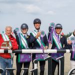 Eine wahre Aufholfjagd gelang dem Team aus Sachsen, die nach der Dressur noch auf dem sechsten Platz lagen. Dank Nullrunden im Gelände konnte das Team einige Plätze gutmachen und lag vor dem abschließenden Springen bereits mit nur knapp drei Punkten Abstand auf dem zweiten Platz. Auch wenn hier und da eine Stange fiel, konnten sie den Silberplatz wahren und schlussendlich bei der Siegerehrung die Medaille mit -114,7 Punkten in Empfang nehmen. Es ritten Anja Schöniger mit Wyonetta, Tabea Glänzel mit Schoensgreen Contaami, Linda Stiefelmeyer mit Lauscheblitz und Jessica Nagy mit Filou.