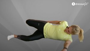 Bei dieser Übung wird deine hüftbeugende Muskulatur gestretcht. So verbesserst du die Beweglichkeit deiner Hüfte und kannst im Trab locker in der Hüfte mitschwingen.