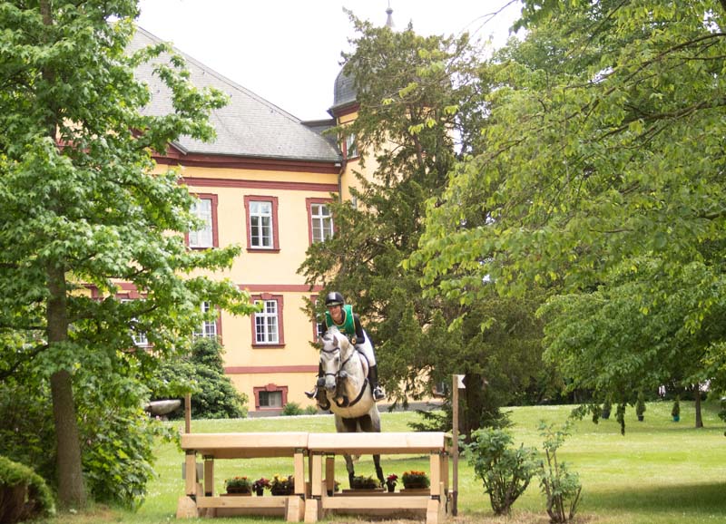 Nach Dressur und Springen lag Felicia von Baath in der Wertung des CDV Cups an der Spitze, dicht gefolgt von Janna Koch und Jeannine Zöbelein. Das schön aufgebaute Gelände fragte einiges an Konzentration von Pferd und Reiter ab. Die ersten Sprünge führten über den Geländeplatz und ein Maisfeld bevor es dann über eine weitere Wiese zum neuen Wasserkomplex ging. Danach ging es durch den Gutsgarten Richtung Ziel. 26 Hindernisse galt es in der Bestzeit von 5:05 Minuten zu überwinden. Das gelang aber nur sieben Reitern, unter anderem der 18-jährigen Janna Koch. Dadurch setzte sie sich mit ihrer neunjährigen Oldenburger Stute Fufa an die Spitze und konnte die offene Prüfung gewinnen. Auch in der CDV Cup Wertung stand sie an der Spitze und sicherte sich zehn Punkte für die Cup Wertung. Dicht auf den Fersen war ihr Felicia von Baath mit Quantum, die lediglich vier Sekunden über der Bestzeit ins Ziel kamen und somit neun Punkte sammelten. Acht Punkte gab es für den dritten Platz, sowohl in der Prüfung als auch der CDV Cup Wertung, für Jeannine Zöbelein mit Donna Fiderella.