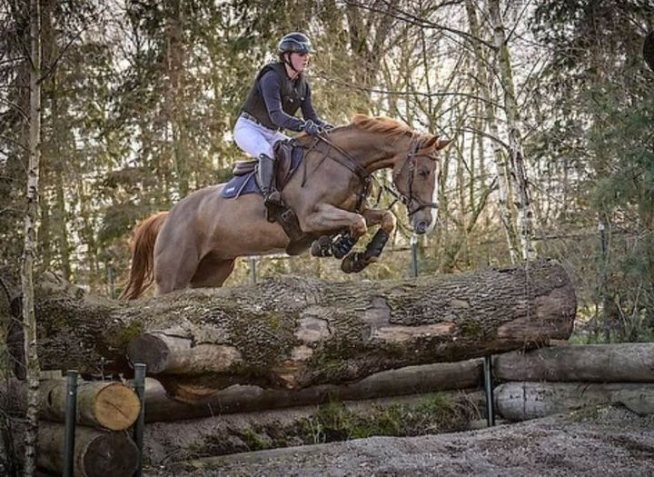 Keano ist durch und durch ein Vielseitigkeitspferd. Sehr gut in allen drei Phasen. Sehr gute und beständige Dressur und eine Maschine in Springen und Gelände.