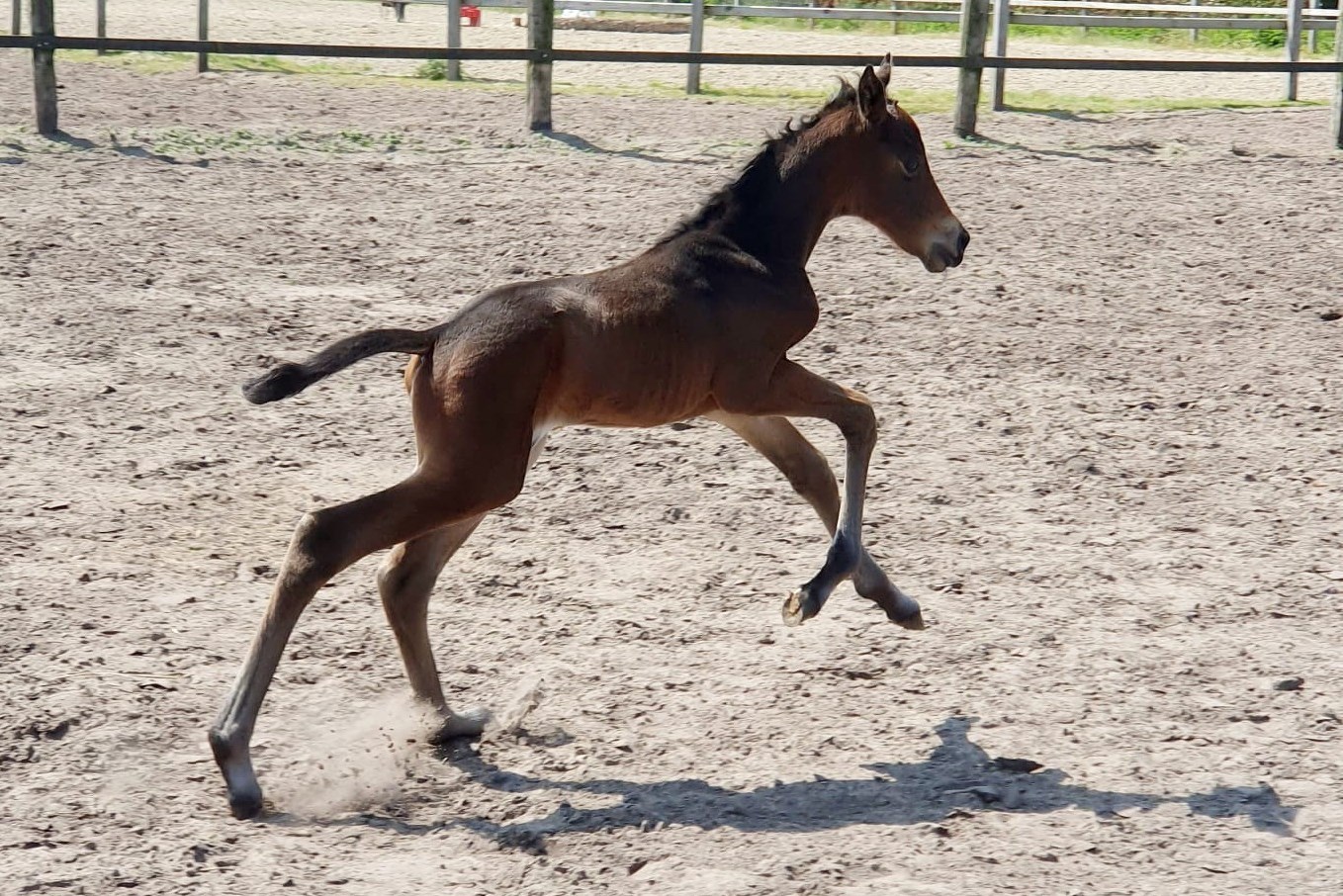 Die „Kleine Luzie“ Trakehner Stutfohlen von Kros, a.d. Königin Callme xx, geboren am 24. Mai 2023, steht zum Verkauf.