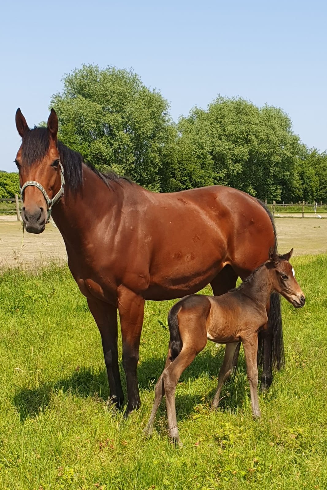 Luzie zeichnet sich durch eine schön gelagerte schräge Schulter und eine große Kruppe aus. Sie verfügt über einen lockeren Bewegungsablauf sowie eine gute Dreiteilung des Körpers, ist genügend lang und wüchsig, wird aber nicht riesig. Ihr Wesen lässt sich mit charmant, aufgeschlossen und seeehr neugierig beschreiben. Sie ist ausgesprochen agil, bewegungsfreudig und wendig. Auf den Fotos ist sie zwischen 2 Tagen und 3 Wochen alt. Mutter und Fohlen sind in 59387 Ascheberg Zuhause und können dort nach Absprache besichtigt werden.