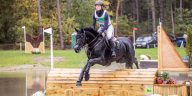 ,,Die Dressur fand ich sehr gut, da war Timmo unheimlich konzentriert und wir hatten keinen Patzer drin, bis auf ein paar Kleinigkeiten, wo wir beim nächsten Mal noch ein paar Punkte rausholen können. Beim Gelände haben wir dann wirklich lange hin und her überlegt, ob ich überhaupt reiten soll, aber wir haben uns dann dafür entschieden und letztendlich ging es dann auch, wobei ich sagen muss, dass ich vorher noch nie in so einem starken Regen Gelände geritten bin. Ich bin sehr sehr stolz wie Timmo das gemacht hat! Am ersten Wasser gab es den kleinen Stolperer beim Einsprung, da hatte ich dann nicht genug Schwung zur Kante und bin deshalb alternativ geritten. Auf den Strecken haben ich ihn dann galoppieren lassen wie er wollte. An der Kombination 22 hatte ich vier Galoppsprünge geplant, aber Timmo ist in der Landung leicht gerutscht und ich bin von der Ideallinie abgekommen, deshalb kamen wir dann mit fünf Galoppsprüngen an und es passte nicht ganz. Er ist aber super brav abgesprungen, aber der MIM Fehler war dann halt passiert. Insgesamt hat er aber viele tolle Sprünge trotz der schwierigen Bedingungen gemacht. Man merkt schon, dass die Pferde teilweise etwas ins Leere galoppieren und nicht so vorwärts kommen wie man es normalerweise kennt. Aber man muss auch sagen, dass es nicht so rutschig war, wie man erwartet hätte.