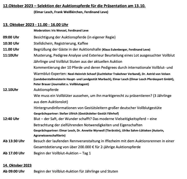 In diesem Jahr findet am 13. Oktober eine weitere Veranstaltung der Initiative Mit Vollblut in die Zukunft statt. Der Austragungsort ist wieder Iffezheim, auf dem Auktionsgelände der BBAG.