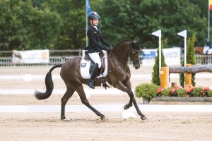 In toller Form präsentierte sich die EM Debütantin Milla Staade aus Bonn mit ihrer Ponystute Charleen San (Züchter: Sonja & Jürgen Sande; Besitzer: Familie Staade). Seit etwas über einem Jahr sitzt die 14-jährige im Sattel der 8-jährigen Deutschen Reitponystute. In Westerstede konnten sie sich in der Dressur nochmals deutlich verbessern und erzielten mit -25,5 Punkten ihr bisher bestes internationales Ergebnis im Viereck. Alle drei Richter sahen das Paar nach der ersten Teilprüfung auf dem ersten Platz. Die beiden werden im Alltag von Ben & Pia Leuwer auf dem Rodderberg gecoacht.