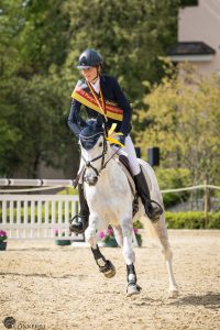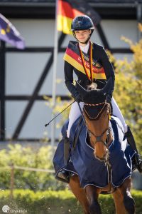 Erwartungsgemäß recht überschaubar war das Starterfeld bei den Jungen Reitern im Rahmen der offen ausgeschriebenen Drei-Sterne-Kurzprüfung (CCI3*-S). Einige Reiter fehlten aus verschiedenen Gründen, beispielsweise wegen des anstehenden Abiturs. Nicht mehr dabei war aus Altersgründen auch die Vorjahres-Beste Isabella von Roeder. An ihre Stelle trat Pita Schmid aus dem sächsischen Neumark mit ihrer Hannoveraner Stute Favorita V. Mit einem Sieg bei den Junioren im vergangenen Jahr hatten die beiden bereits bewiesen, dass ihnen die Strecke rund um den Weiherhof liegt. Hieran konnten sie nun nahtlos anknüpfen. Nach der Dressur waren sie noch Dritte, im Gelände allerdings die Schnellsten der insgesamt elf Preis-der-Besten-Kandidaten. Das reichte für die Führung, die sie im Parcours mit nur 0,8 Zeitstrafpunkten auch nicht mehr abgaben. Mit lediglich 35,0 Minuspunkten siegte Schmid mit Abstand vor der Baden-Württembergerin Silva Kelly und dem Hannoveraner Stalypso-Sohn Calypso. Letztere bildeten im Viereck noch das Schlusslicht im U21-Starterfeld, rückten jedoch im weiteren Verlauf der Prüfung unaufhaltsam nach vorne. Ihren Silberrang mit 40,7 Minuspunkten verdankte Kelly dann einer von nur zwei Nullrunden im Parcours. Die zweite Nullrunde ging auf das Konto das zweifachen U18-Mannschaftseuropameisters Matti Garlichs und dem 14-jährigen Westfalen Ludwig. Das Paar belegte mit 42,4 Minuspunkten den Bronzerang.
