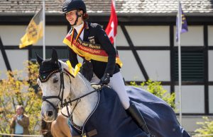 Justus Hayessen ist der „Beste“ der deutschen Ponyreiter. Nach Dressur noch Neunter, gelang dem hessischen Nachwuchsreiter und seiner Schimmelstute Miss Windsor im Gelände eine Nullrunde. Damit rückte der 14-Jährige bereits in die Medaillenränge vor und sicherte sich dank eines nervenstarken Springens mit nur 32,2 Minuspunkten den Titel. Hayessen ist nach 2017 – damals gewann Calvin Böckmann – der erste Preis-der-Besten-Sieger seiner Altersklasse. Zwischenzeitlich hatten stets Reiterinnen die Nase vorn. Auch in Radolfzell sah es zunächst nach einer Siegerin aus. Als Führende nach Dressur und Geländeritt hatte es Lea Brügger aus Ascheberg in Hand, die Serie fortzusetzen. Ein Abwurf am vierten Sprung verhinderte dies jedoch. Brügger wurde mit 34,0 Minuspunkten wie schon im Vorjahr Zweite. Dieses Mal allerdings nicht mit Next Generation, sondern mit deren elfjährigen Tochter Golden Girl’s Nelly. Auf dem Bronzerang landete Greta Marie Löhr aus Rhede mit dem 15-jährigen ehemaligen PdB-Sieger Ratcline Dream (42,3 Minuspunkte).