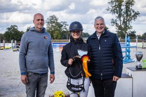 Über ihren ersten internationalen Sieg konnte sich die erst 15-jährige Clara Marie Schmitz mit der 12-jährigen Westfalenstute Rousseaus Mademoiselle (Züchter: P.J. Crum; Besitzerin: Nora Schmitz) freuen. Die Grevenerin, die auch im Dressur- und im Springsattel sehr erfolgreich unterwegs ist, konnte die Prüfung mit der unter Vanessa Bölting bereits bis CCI3*-L erfahrenen Stute mit ihrem Dressurergebnis von -31,0 Punkten beenden. Den zweiten Platz sicherte sich Helena Kuhlmann mit der bereits 17-jährigen Trakehnerstute Tamina (Züchterin: Dr. Elke Söchting; Besitzerin: Hildegard Annas) und -31,3 Punkten. Für die 17-jährige Reiterin aus dem westfälischen Bösensell war es erst der dritte internationale Start. Ohne einen Abwurf im Parcours hätte es für das Duo sogar zum Sieg gereicht. Auch der dritte Rang ging an ein Nachwuchstalent aus Westfalen: Hier platzierte sich Lotta Marie Sohlmann mit ihrer 12-jährigen Sportpartnerin Victoria (Züchter: Klaus Storbeck; Besitzer: Stefan Sohlmann). Die Saerbeckerin, die in den letzten Jahren äußerst erfolgreich im Vierkampf unterwegs war und die in diesem Jahr auch bereits die CCI1*-Intro in Hamm gewinnen konnte, beendete ihre dritte internationale Prüfung mit -31,8 Punkten.