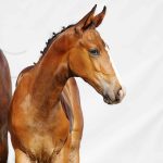 Teuerstes Fohlen des Abends war die Kopfnummer 8 EinHerrRose v. Ellis (Z.u.Ausst.: Christiane Rose, Münster). Die Mutter des Hengstfohlens Bella Biene v. Basic war selbst im Turniersport erfolgreich. Sie ist die Halbschwester von Designer, der unter dem Sattel von der Vielseitigkeitsreiterin Bettiny Hoy in CCI****-Prüfungen hocherfolgreich war. Der Braune wurde für 6.250 Euro zugeschlagen.